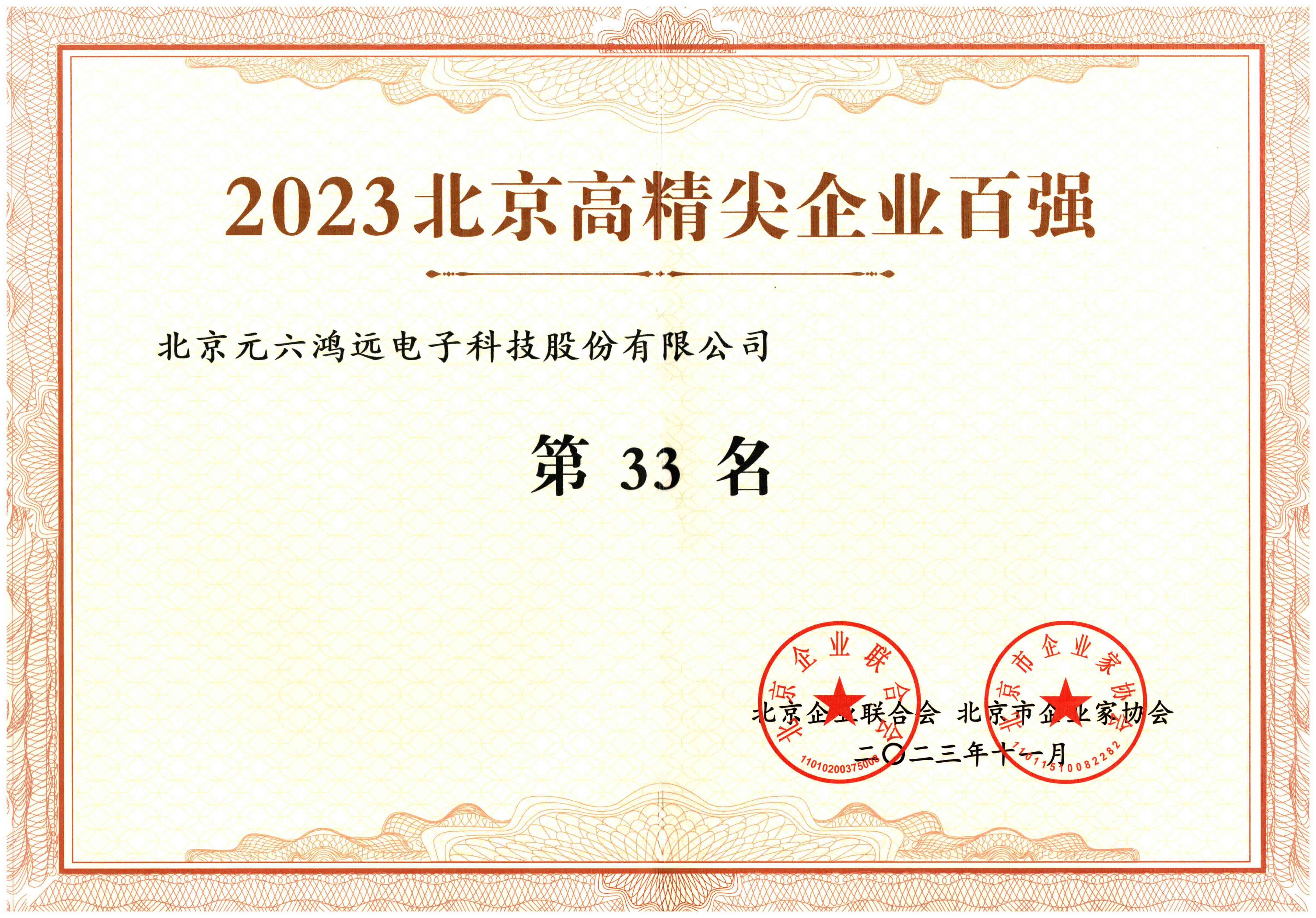 2023年北京高精尖企业百强
